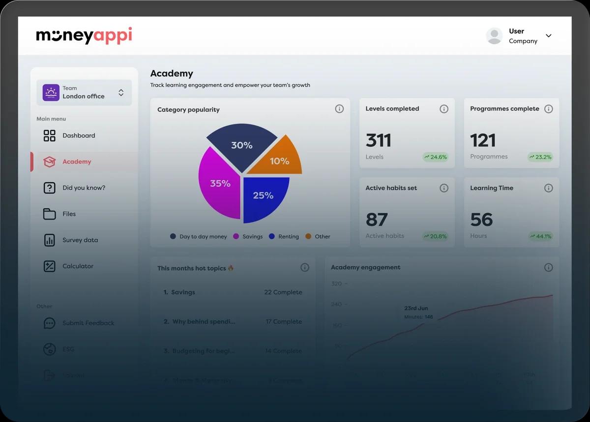 Financial health, education, and wellbeing are distinct, with each person’s needs varying by degree. Designed by behavioural scientists, our approach supports every life stage. By fusing psychology with technology, we build positive money habits in a personalised, engaging way — unlocking the future of financial wellbeing and empowering employees with the literacy, awareness, and confidence to be more moneyappi.