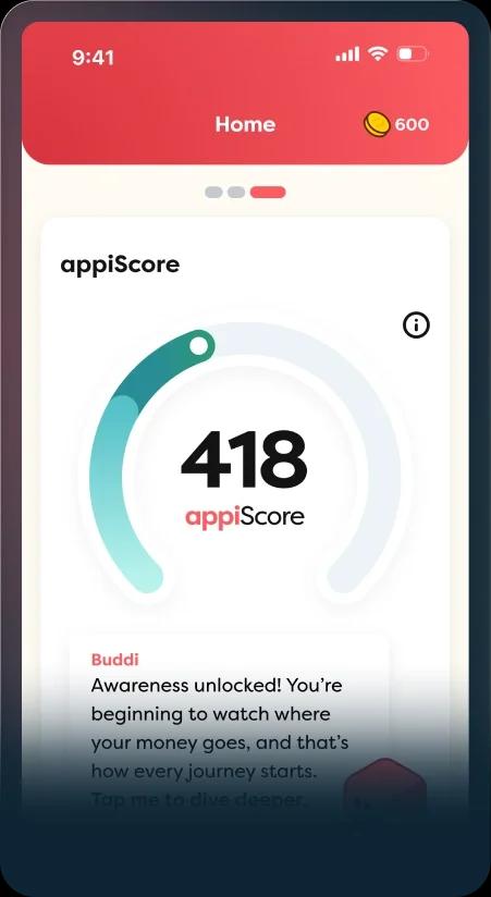 Where a Credit Score reflects a users creditworthiness, the appiScore focuses on a holistic approach to quantify how an individual thinks, feels and acts about their financial situation.